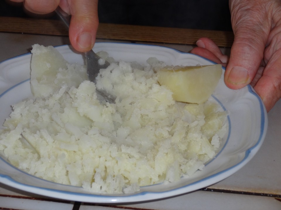 Mash cooked potatoes with fork